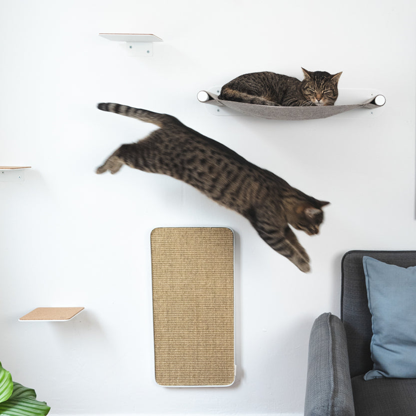 Nichts muss mehr aushalten können als eure Lieblingsdinge. Damit ihr lange Spaß an euren Katzenmöbeln habt, verwenden wir gute Materialien, die hochwertig verarbeitet werden. Elemente, die sich schnell abnutzen – zum Beispiel Kratzflächen – können bei Bedarf ausgetauscht werden, ohne dass ein ganzes Möbelstück im Müll landet. Selbstverständlich achten wir darauf, dass unsere Materialen gesund für Katze, Mensch und Umwelt sind.