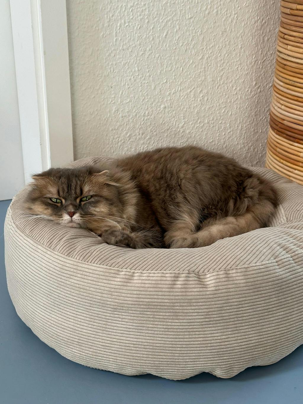NEST Katzenbett – rund, weich, stilvoll. Das NEST Katzenbett ist der ideale Rückzugsort für Katzen, die es kompakt und gemütlich lieben. Mit seinem runden Design (Ø ca. 55 cm) lädt es zum Einrollen und Entspannen ein – perfekt für ruhige Nickerchen in geborgener Atmosphäre. Der weiche Cordstoff sorgt für ein angenehmes Liegegefühl und macht das Katzenbett zu einem stilvollen Wohnaccessoire in Ton-in-Ton-Optik. Dank hochwertiger Polsterung in Möbelqualität liegt deine Katze nicht nur bequem, sondern auch ergonomisch gut gestützt. Der Bezug lässt sich einfach abnehmen und waschen – für langanhaltende Frische. Ob als Katzenbett auf der Couch, dem Sideboard oder frei im Raum: NEST ist die gelungene Kombination aus Design, Funktion und Komfort – für Katzen, die Wert auf Stil legen.